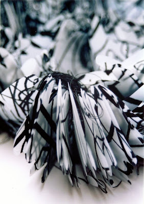 Heidi Daish repeats and layers simple shapes to form beautiful organic looking structures. Shapes are hand cut from treated paper, plastic and stiffened fabrics, then folded and stitched to create these amazing sculptural pieces.